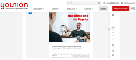 Das Mitgliedermagazin younited der younion – Gewerkschaft der Gemeindebediensteten (Daseinsgewerkschaft) widmet sich in seiner aktuellen Ausgabe den Auswirkungen von Hitze auf die Arbeitswelt. In meinem Artikel geht es um die psychischen Folgen der Klimakrise und darum, wie Gefühle von Angst, Wut oder Schuld in Handlung und Resilienz verwandelt werden können. Insgesamt zeigt das Magazin eindrucksvoll, wie sehr die Klimakrise in verschiedenen Berufen bereits spürbar ist.